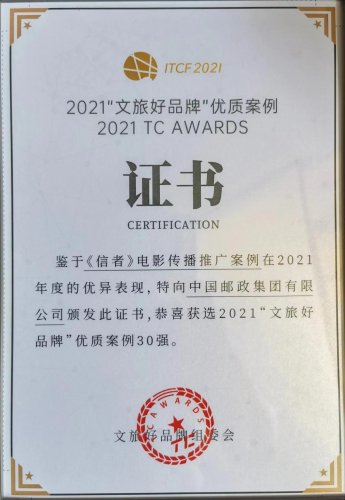 守正創(chuàng)新、融通中外,傳播文旅好品牌。12月11日,2021第六屆博鰲旅游傳播論壇在海南博鰲舉辦,論壇現(xiàn)場(chǎng)發(fā)布了2021“文旅好品牌”優(yōu)質(zhì)案例30強(qiáng),由中國(guó)郵政集團(tuán)有限公司報(bào)送的《信者》電影傳播推廣案例榮獲該獎(jiǎng)項(xiàng)。