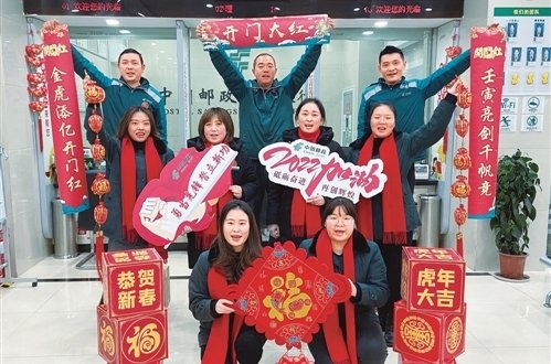 喜氣洋洋辭舊歲,虎虎生威迎新年。新年伊始,中國郵政廣大員工意氣風發(fā)、豪情滿懷,全力開展業(yè)務(wù)旺季開門紅活動,大步邁進推動企業(yè)高質(zhì)量發(fā)展的新征程。在推進代理金融業(yè)務(wù)發(fā)展中,重慶市萬州片區(qū)郵政分公司定下了一個“小目標”:春節(jié)前,全區(qū)郵政儲蓄余額規(guī)模要突破200億元。作為萬州郵政代理金融的標桿網(wǎng)點,電報路郵政所員工一展“壬寅亮劍千帆競,金虎添億開門紅”的對聯(lián),積極營造營銷氛圍,決心在網(wǎng)點儲蓄余額破億元的基礎(chǔ)上,再創(chuàng)新業(yè)績。