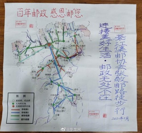 52歲的張敬,是重慶一名集郵愛好者。2021年冬天,他耗時(shí)一個(gè)多月,徒步走完重慶綦江近2000里的郵路,并“打卡”當(dāng)?shù)?1個(gè)郵政所和主題郵局。1月13日,張敬接受記者采訪時(shí)稱,他崇拜“馬班郵路”上的王順友,也想親身體驗(yàn)一把鄉(xiāng)村郵遞員的辛苦。2021年10月28日至12月26日,他開啟“環(huán)綦郵路”徒步行。一個(gè)背包、一袋干糧、一瓶礦泉水,他背著行囊平均每天徒步二三十公里。
