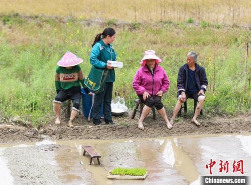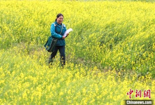 圖為朱正琴把郵件送到田間地頭?!∧ス鹳e 攝