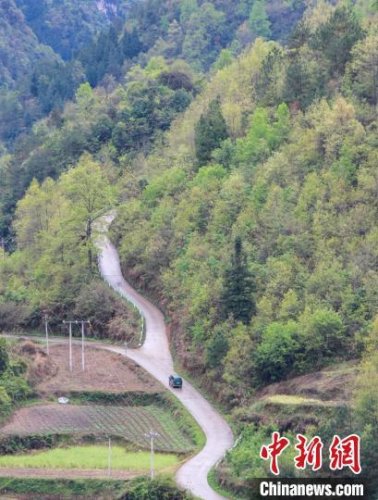 貴州省施秉縣白塘村的山路上,朱正琴駕車在投遞途中。 磨桂賓 攝