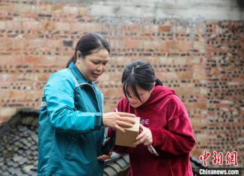 圖為朱正琴準備將郵件送往百姓家中。磨桂賓 攝