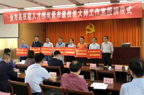 近日,六安市人社局舉行全市高技能人才授獎(jiǎng)暨市級(jí)技能大師工作室授牌儀式。盧海龍因獲得“第五屆安徽省技能大獎(jiǎng)”榮譽(yù)稱號(hào),上臺(tái)接受表彰。在獲得省人社廳5萬(wàn)元獎(jiǎng)勵(lì)的基礎(chǔ)上,市人社局再獎(jiǎng)勵(lì)6萬(wàn)元,累計(jì)獲得獎(jiǎng)勵(lì)11萬(wàn)元。