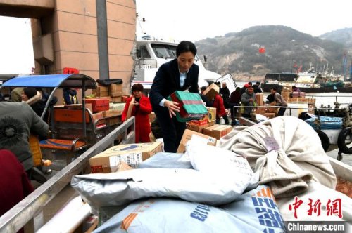 船一到,在碼頭等待已久的蔣玉美就熟練地從隨船貨物中,挑選出屬于郵政公司的郵件和包裹。“今天有100多件,大多是村民網(wǎng)購的生活用品。”蔣玉美稱,每天一班的客船在中午到達(dá),她就會到碼頭接收,分揀后進(jìn)行投遞。
