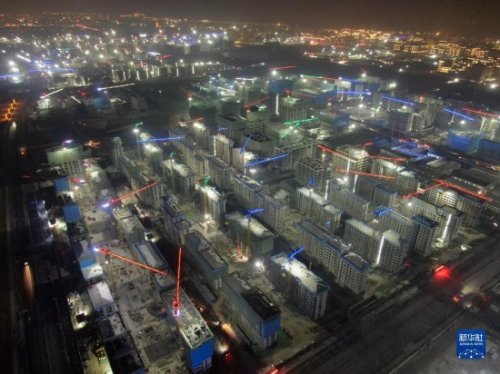 這是雄安新區(qū)容東片區(qū)華望城項(xiàng)目夜景(1月4日攝,無人機(jī)照片)。 新華社記者 駱學(xué)峰 攝