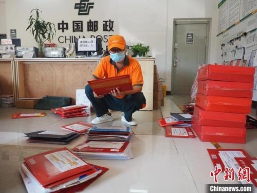 營(yíng)業(yè)部里,近150封來自全國(guó)各地高校的錄取通知書分裝在四個(gè)大袋子里。它們中的大部分將被送到學(xué)校教務(wù)處,而后到達(dá)學(xué)生手中。