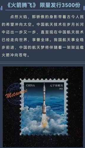 記者從中國航天科技集團(tuán)有限公司旗下航天科普營了解到,全球首個(gè)元宇宙概念虛擬郵局——中國郵政元宇宙郵局將于7月30日正式亮相,同時(shí)發(fā)布元宇宙郵局首套8款A(yù)I“航天主題”郵政數(shù)字藏品。