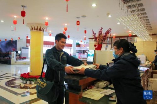 2月1日,謝菲俊將報(bào)刊等郵件投遞到山上賓館工作人員手中。