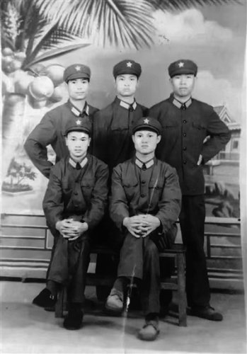 張林昌(前排右一)軍裝照。張林昌提供