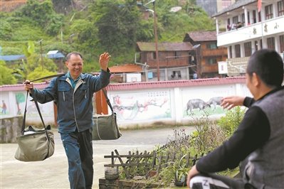河口鄉(xiāng)位于大山腹地,村與村看似近在眼前,實則山水環(huán)繞,道路蜿蜒曲折。“上山鉆云天,下山到河邊,兩山能對話,走路要半天”是這里的真實寫照。早些年,當(dāng)?shù)貨]有固定的郵政營業(yè)點。分揀完郵件后,張林昌要用扁擔(dān)挑起三四十斤重的郵包,沿著山路逐戶投遞,一個來回就是90余公里。餓了找點野果,渴了捧口山泉,有時候還要涉溪渡河。第一次送郵件,張林昌整整走了3天?;貋頃r,只見他頭發(fā)蓬亂,褲腳沾滿泥巴,衣服被刺穿了好幾個洞,手腳上還有一道道血印子。但他絲毫不覺得苦:“當(dāng)過兵的人有一副‘鐵腳板’,走這樣的山路不算事。”