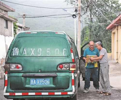 帶著這些郵件,許桂明駕駛郵車冒著大雨在蜿蜒的山路上行進?!吧衔邕€是烈日當頭,汗流浹背,下午就是瓢潑大雨,全身淋透,這在山區(qū)很正常。”許桂明說。停好車,撐起傘,許桂明把郵件緊緊抱在懷里,沿著小路跑進村里。10年來,他始終牢記“人民郵政為人民”的服務宗旨,走遍了這15個行政村的家家戶戶,與村民們相熟相知,遇到不方便外出購物的老人以及需要幫助的村民,他都主動幫助捎送生活物資。