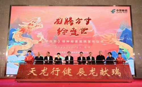 10月27日,中國郵政《甲辰年》特種郵票圖稿發(fā)布儀式在京舉行。國家郵政局副局長、中華全國集郵聯(lián)合會會長戴應(yīng)軍,中央港澳工作辦公室巡視員許麗,中國郵政集團有限公司黨組書記、董事長劉愛力,黨組副書記、總經(jīng)理鄭國雨,黨組成員、副總經(jīng)理康寧,觀復博物館創(chuàng)辦人、著名文化學者馬未都,中國社科院榮譽學部委員、民俗學會名譽會長劉魁立,中國國家乒乓球隊運動員林高遠、于子洋、陳幸同、錢天一等出席活動。發(fā)布儀式上公布了《甲辰年》特種郵票圖稿并同步啟動郵票印制。