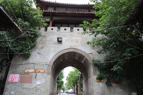 沿大東街步行至小東街,來到位于古資洲四大城門之一的建春門。老街盡頭,高墻矗立,城門洞開。行人三三兩兩從城門經(jīng)過。遠(yuǎn)觀,城墻墻體由兩尺見方的大石堆砌而成,高三四米,呈弧形,往沱江北側(cè)延伸;近看,城門洞乃巨型條石以傳統(tǒng)方法拱立,墻面黝黑,布滿深深“皺紋”?!敖ù洪T外附近便是珠江驛所在地。”據(jù)資中縣郵政分公司綜合辦副主任邱浪介紹,57歲的邱浪是土生土長的資中人,他說,這條古時老街,承載著當(dāng)年聯(lián)通成渝兩個城市的重任,為當(dāng)時的地方經(jīng)濟(jì)發(fā)展起到了關(guān)鍵作用。