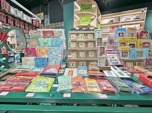新國潮主題郵局內(nèi),冰箱貼、鑰匙扣等文創(chuàng)產(chǎn)品琳瑯滿目?!醭萄┟贰z