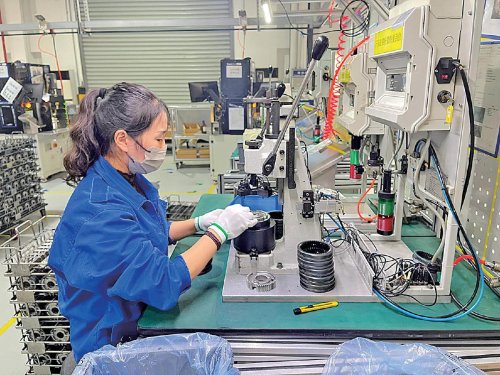 常州郵政員工在賀爾碧格車間裝配同步器。 □查葉娟 攝