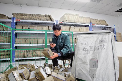 攬投員上門(mén)攬收珍珠郵件。