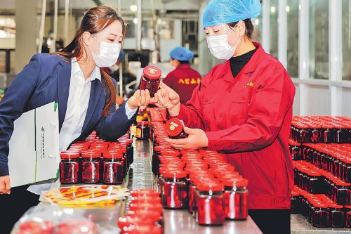 郵儲銀行安徽省淮南市分行客戶經(jīng)理上門了解企業(yè)需求。有了資金支持,八公山豆制品有限公司不斷擴(kuò)大規(guī)模,將一塊塊豆腐做成了榮獲金獎(jiǎng)的紅油腐乳?!鮿㈥库≌戮S娜 王士龍 攝