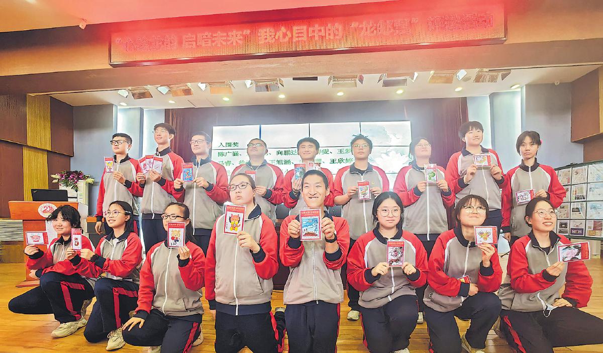 在點評優(yōu)秀獎作品時,董琪說:“這兩幅獲獎的郵票設計圖具備比較齊全的郵票元素,符合郵票設計的規(guī)范。高妍同學的作品體現(xiàn)了對傳統(tǒng)文化層面的龍的生動理解,曾繁妤同學的作品將祝福祖國發(fā)展的心愿融入其中,都非常不錯!”
