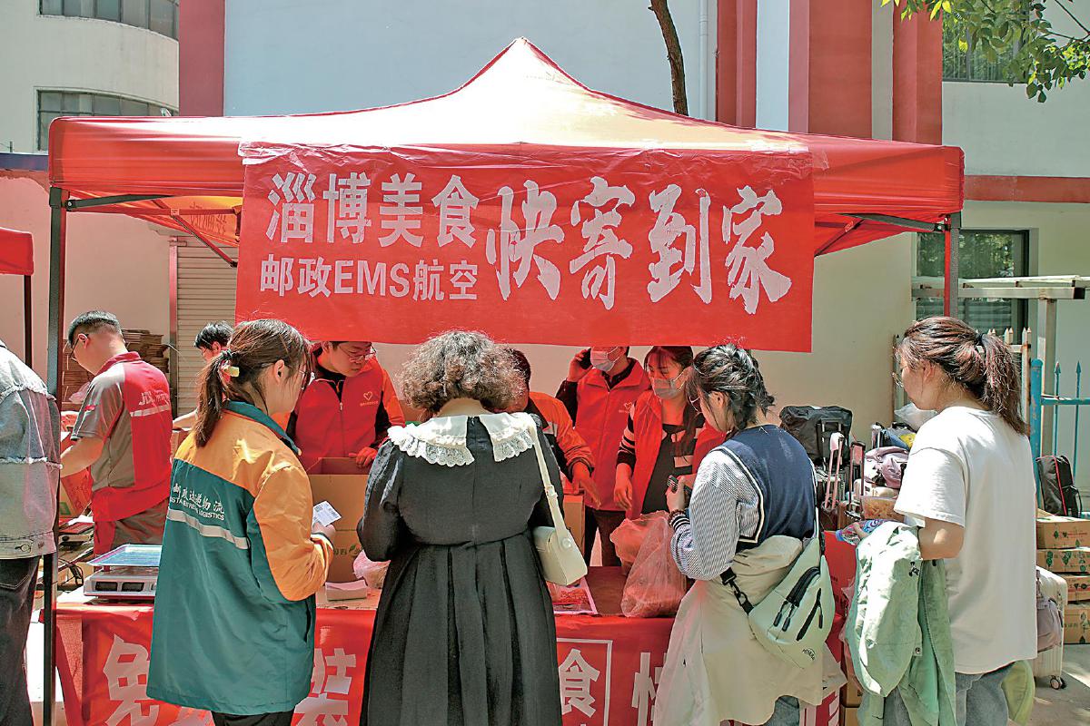 2023年5月至6月的旅游高峰期,淄博郵政在客流量較大的重點區(qū)域共設(shè)立寄遞點12處,累計收寄3.13萬件郵件。同步開發(fā)炒鍋餅、小餅、燒烤醬寄遞協(xié)議客戶20余戶,寄遞總量6萬余件。