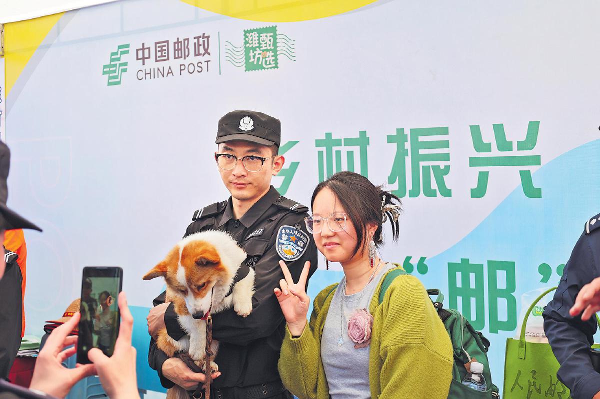 4月20日,全網(wǎng)流量過億的柯基警犬福仔,在執(zhí)行巡邏任務的間隙來到濰坊風箏郵局參加“巡回粉絲見面會”,與粉絲親密互動。