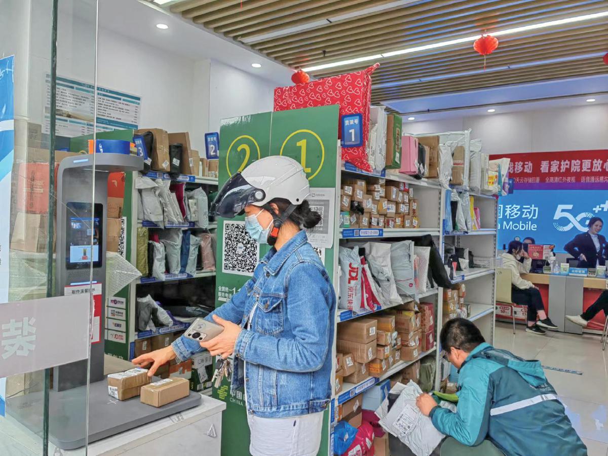 “把小郵局建在電信營業(yè)廳,不僅有效壓降了建設(shè)成本,還可以通過疊加郵件投遞、散件攬收、拼多多退換貨等業(yè)務(wù),實現(xiàn)與電信公司互相引流,讓小空間發(fā)揮大作用?!背菂^(qū)寄遞事業(yè)部負(fù)責(zé)人董蔚介紹說。