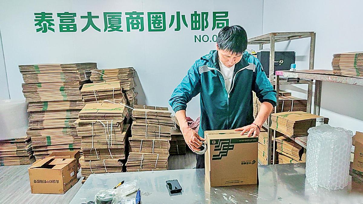 常州郵政在電商樓宇區(qū)域設立的小郵局可以快速攬收、前置發(fā)貨。