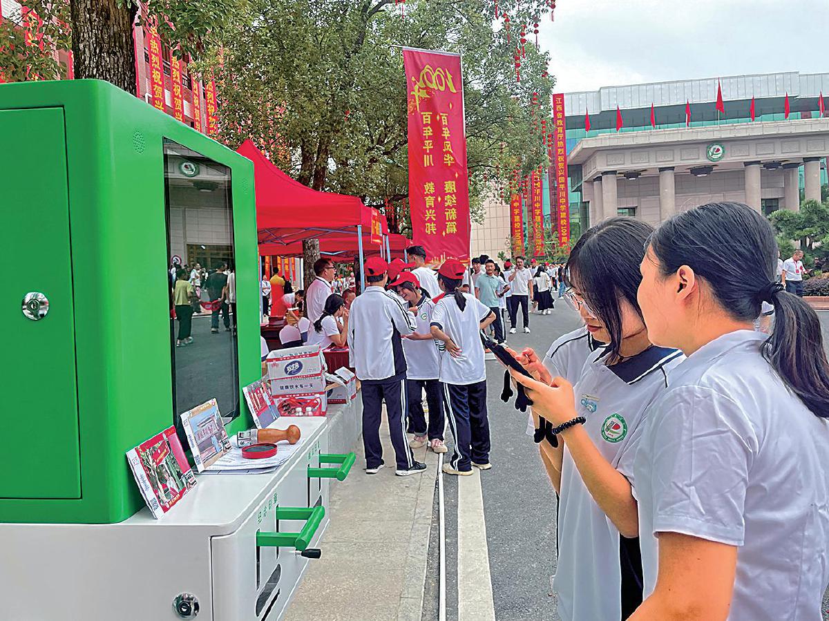 興國(guó)縣分公司在平川中學(xué)百年校慶活動(dòng)現(xiàn)場(chǎng)設(shè)置明信片打印機(jī),吸引同學(xué)們參與?! 趵钇G 攝