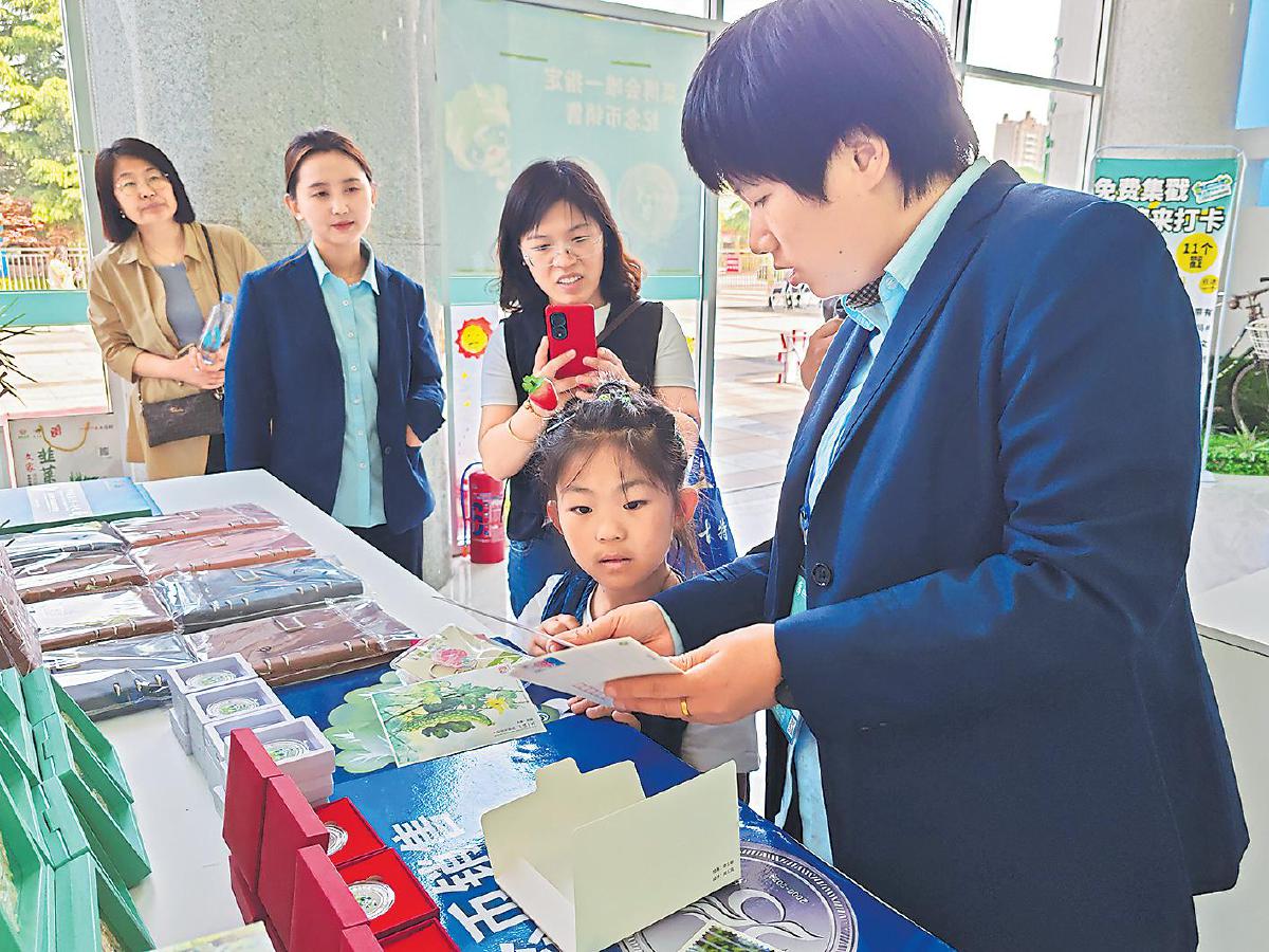 蔬菜郵局的工作人員向小朋友介紹明信片。