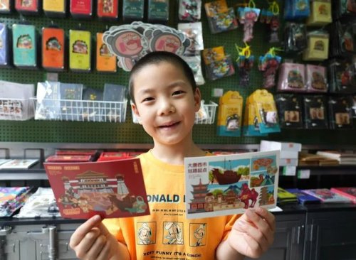 走入位于大唐西市絲綢之路風(fēng)情街的主題郵局,記者看到,店鋪門口設(shè)立了鯉魚傳書特色信筒,將古代“鯉魚傳書”的典故呈現(xiàn)至游客眼前,與大唐西市絲路起點廣場遣隋使號海船精妙呼應(yīng)。市民游客可以在逛主題郵局的同時,穿越絲綢之路風(fēng)情街,體驗“特色文創(chuàng)+郵政寄遞”服務(wù),一站集齊“絲路起點文創(chuàng)印章+郵政特色郵戳”。