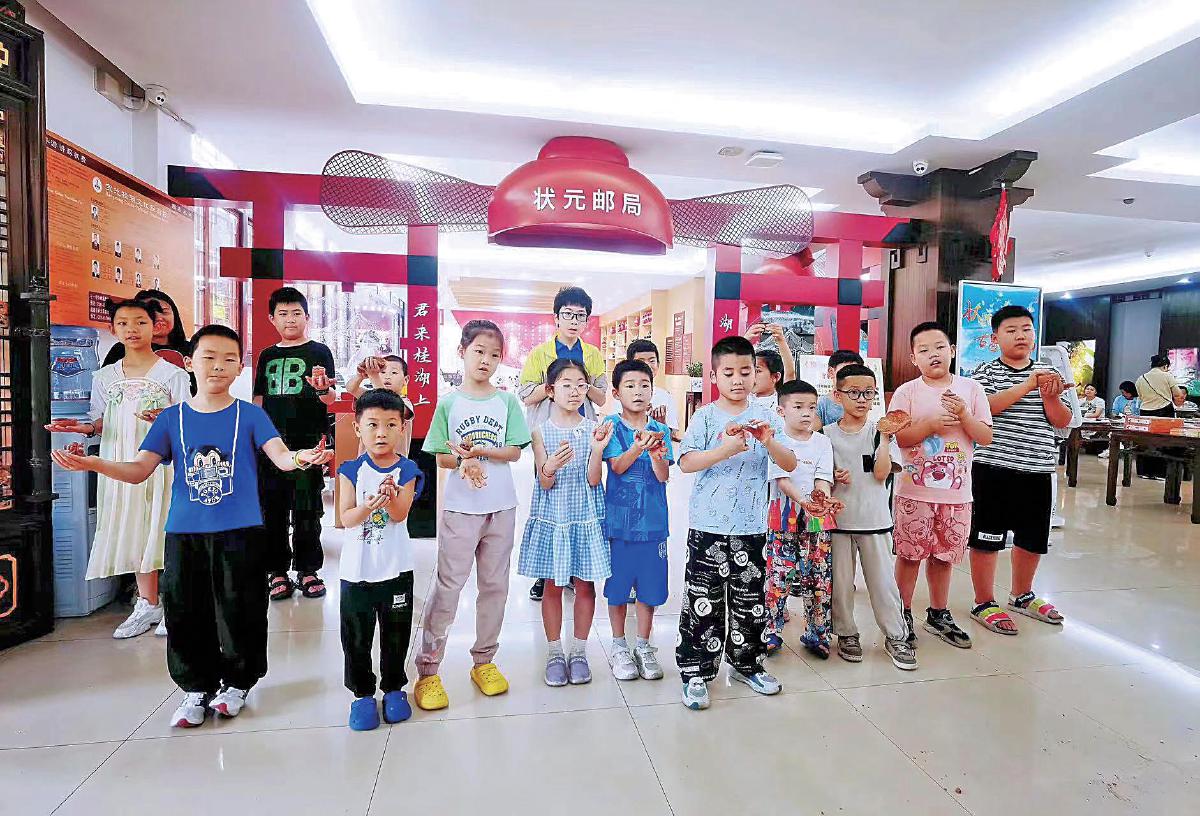 窗內(nèi)是古香古韻的文創(chuàng)產(chǎn)品,窗外是創(chuàng)新改革的郵政新貌。狀元郵局以文化惠民為切入點(diǎn),精心策劃了一系列活動(dòng)。今年5月初,新都郵政邀請(qǐng)了近百名集郵愛好者游逛楊升庵博物館,大家親手制作古風(fēng)團(tuán)扇,在集郵講堂里分享郵票知識(shí),傾聽狀元郵局里各個(gè)文創(chuàng)產(chǎn)品背后的故事。近日適逢高考季,狀元郵局舉辦了“金榜題名”題字活動(dòng)。一塊大型的紅色展板置于廳堂中央,供來往學(xué)子寫上自己的高考心愿。“作為新都人,從小就聽說過楊升庵的故事,我要以‘明朝四川唯一狀元’為榜樣,希望7月也能迎來屬于自己的收獲。”前來打卡的高三學(xué)子陳同學(xué)說。