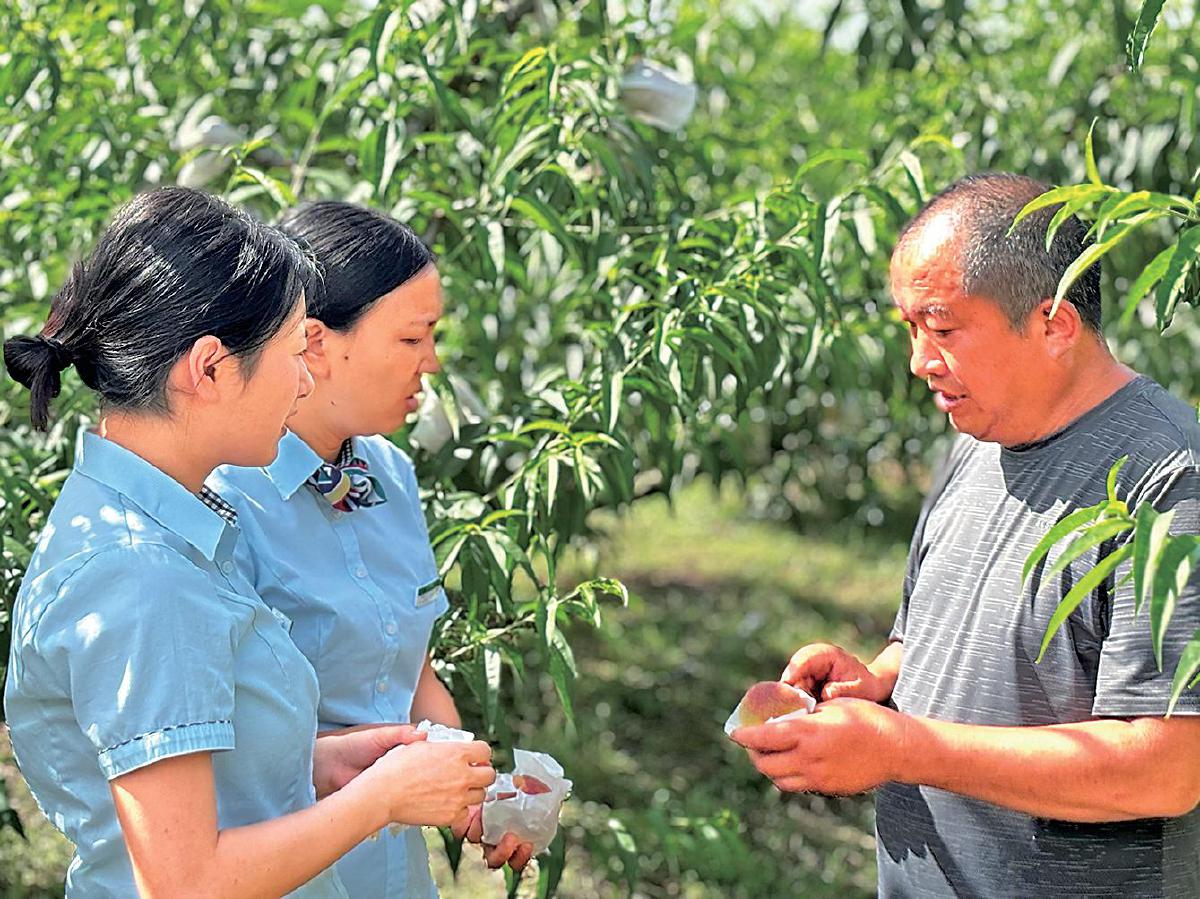 郵政工作人員在郭家村果園了解農(nóng)品情況,并向農(nóng)戶介紹郵樂(lè)平臺(tái)。 □宋貞穎 攝