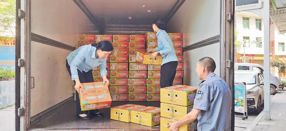 “妹兒,我又來(lái)寄枇杷了。今年最后一茬,收尾了!”5月27日一大早,剛開(kāi)門(mén)營(yíng)業(yè)的重慶市云陽(yáng)縣巴陽(yáng)郵政所迎來(lái)了一個(gè)熟悉的面孔。枇杷種植戶(hù)林付成背著沉甸甸的一背簍枇杷,徑直走到郵政臺(tái)席,跟營(yíng)業(yè)員王瑩打起了招呼。