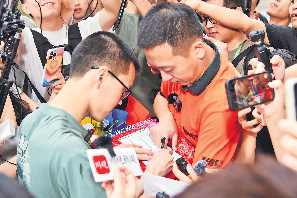 7月8日9時30分,四川省首份高考錄取通知書從四川大學錄取現(xiàn)場發(fā)出,投遞至考生指定地址(上圖)。當天18時45分,北京市第一封普招高考錄取通知書在北京語言大學現(xiàn)場打印,北京郵政特別選派了全國五一勞動獎?wù)芦@得者史春華承擔投遞任務(wù)(下圖)。四川、北京首封高考錄取通知書的安全送達,標志著中國郵政2024年高考錄取通知書寄遞工作正式拉開帷幕。