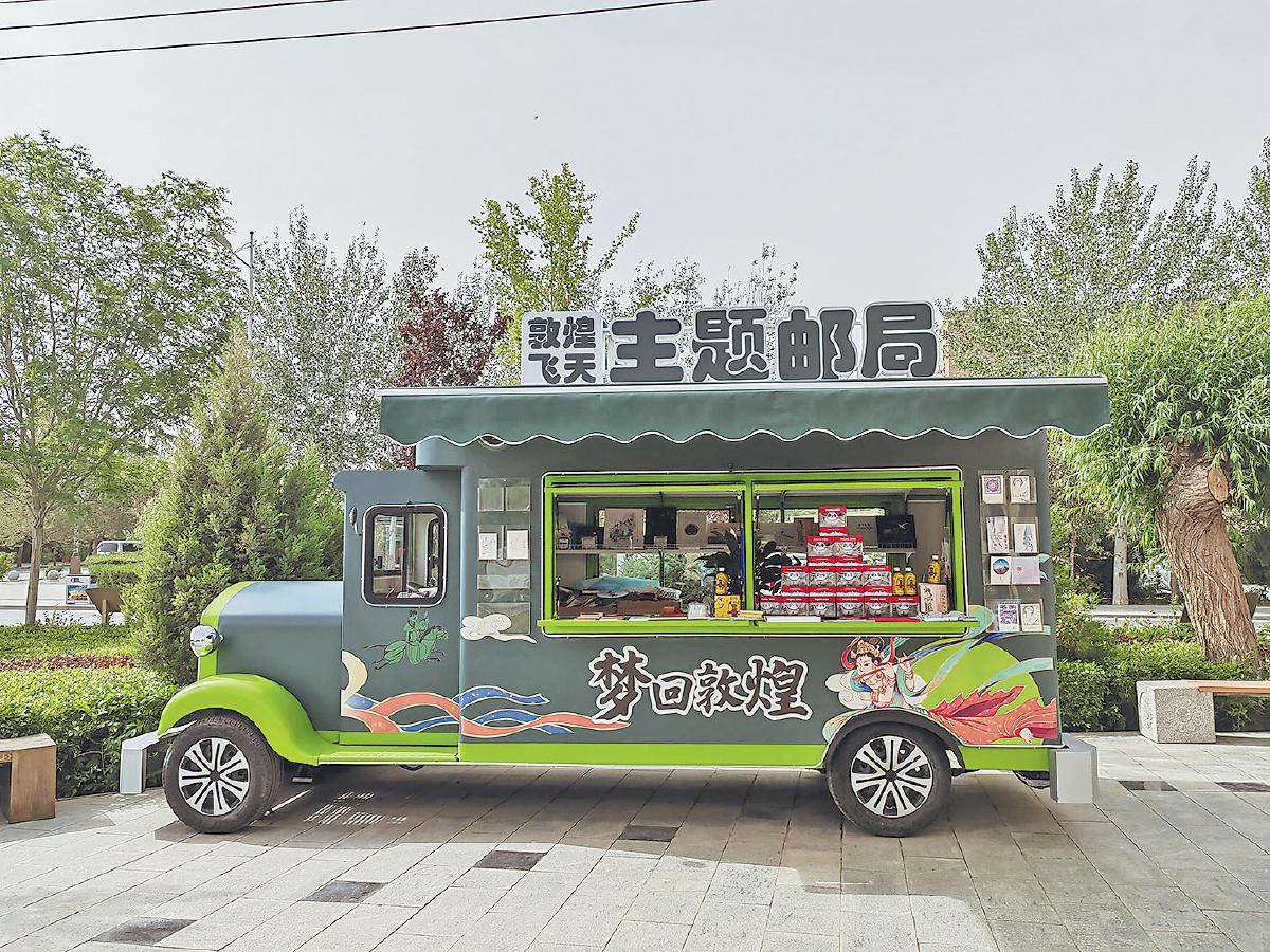 采用街景文化創(chuàng)意的敦煌飛天主題郵局是敦煌市博物館門口一道亮麗的風(fēng)景線。