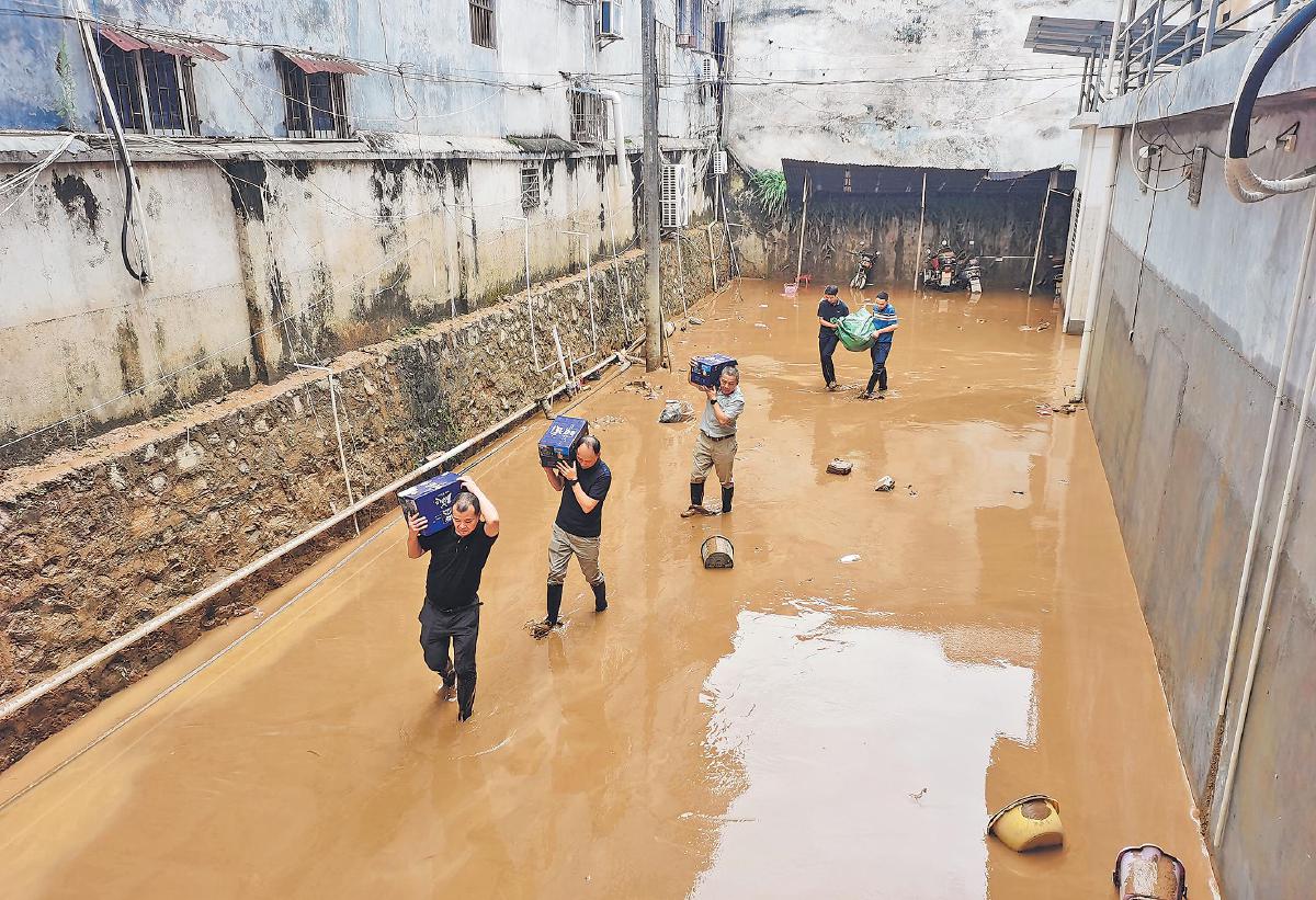 6月26日,安徽省黃山市歙縣郵政分公司第一時(shí)間組織12人的先鋒隊(duì)趕往紹濂郵政所除淤、清理雜物,開(kāi)展災(zāi)后恢復(fù)生產(chǎn)經(jīng)營(yíng)工作?! 跬跗G琪 攝