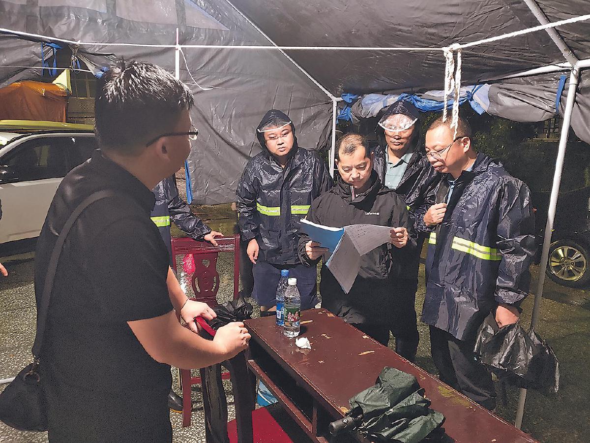 在廣東省梅州市,郵政員工在確保自身安全的前提下積極組織轉(zhuǎn)移郵件、文件和重要物資?!蹒娖计肌z