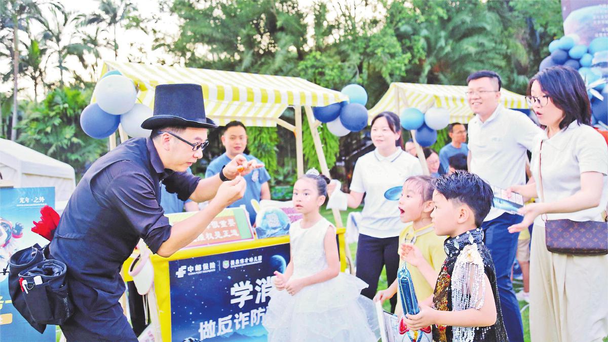 近期,隨著“7·8全國(guó)保險(xiǎn)公眾宣傳日”活動(dòng)的開展,中郵保險(xiǎn)廣西壯族自治區(qū)分公司攜手南寧市郵政分公司舉辦了一場(chǎng)別開生面的親子航天主題消保宣教活動(dòng)?;顒?dòng)現(xiàn)場(chǎng),不僅有航天知識(shí)講座和星空觀測(cè)體驗(yàn),還設(shè)置了保險(xiǎn)知識(shí)競(jìng)答、魔術(shù)表演和時(shí)光慢遞明信片等環(huán)節(jié),激發(fā)了孩子們的學(xué)習(xí)興趣。圖為家長(zhǎng)和孩子們認(rèn)真觀看魔術(shù)表演,積極參與消保知識(shí)問答。
