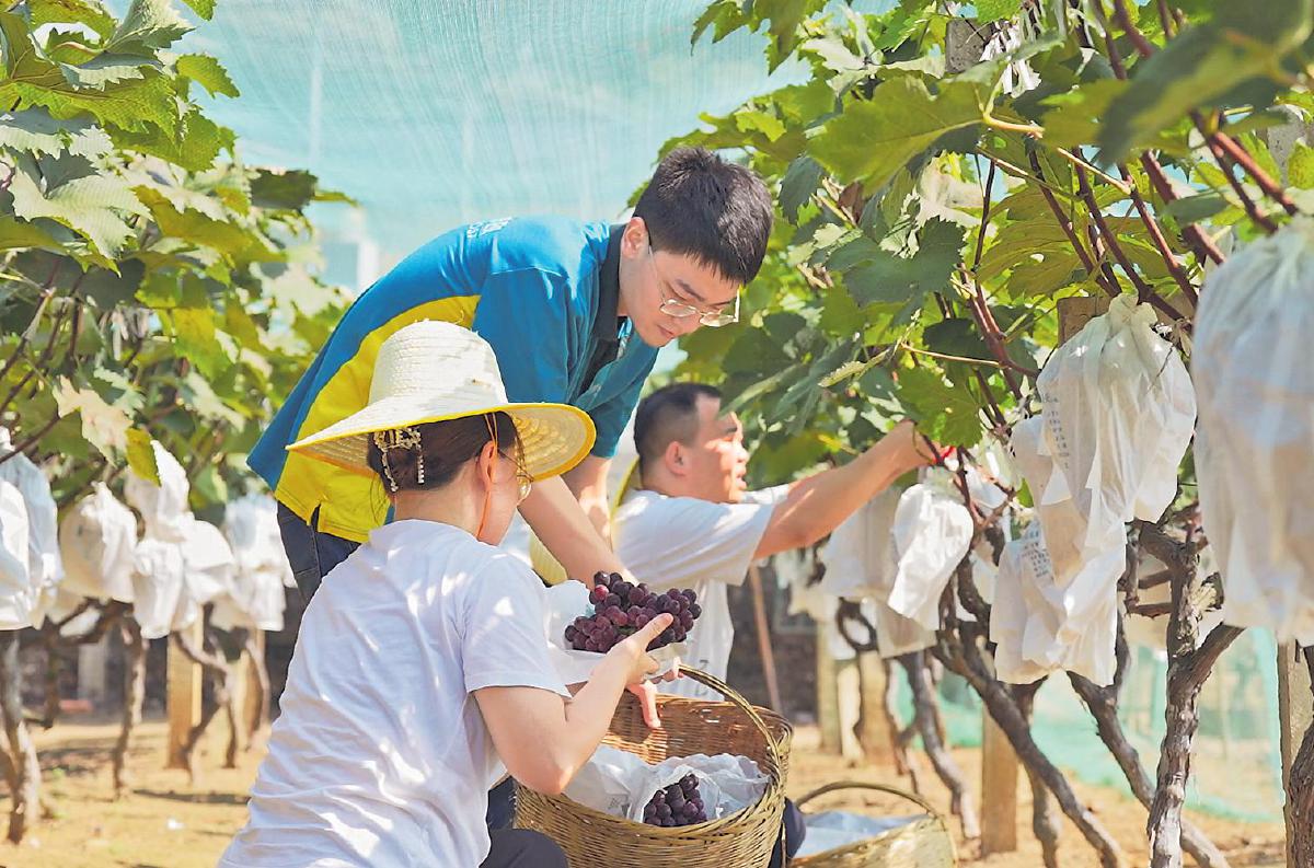 日前,湖北省荊門市郵政分公司助農(nóng)服務(wù)隊(duì)來到漳河鎮(zhèn)京河葡萄種植基地,幫助一位身體有殘疾的種植者采摘、裝箱、打包、運(yùn)輸葡萄,并通過“基地直播+社區(qū)團(tuán)購”的方式,助銷葡萄1300多斤。據(jù)悉,幫扶對(duì)象劉師傅是一位50多歲的殘疾人,因身體活動(dòng)受限,自家種植的葡萄出現(xiàn)滯銷。荊門市分公司通過走訪了解到這一情況后及時(shí)伸出援助之手,解了劉師傅的燃眉之急,受到當(dāng)?shù)厝罕姷暮迷u(píng)。