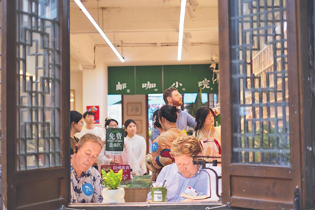 “進(jìn)來后一下子感到很驚艷,感覺超級(jí)棒,非常適合拍照。來宏村一定要到宏村主題郵局打卡。”8月1日,從廣東省來宏村旅游的王女士在郵局內(nèi)點(diǎn)了一杯冰拿鐵,邊喝邊說。為助力“大黃山”文旅發(fā)展,充分滿足游客的個(gè)性化需求,黃山市郵政分公司堅(jiān)持文旅郵融合,將景區(qū)的優(yōu)質(zhì)景觀和客流資源與郵政的“物流+電商+金融+信息”資源有機(jī)融合,把宏村主題郵局打造成為“郵政服務(wù)+文創(chuàng)體驗(yàn)+休閑文旅”的特色服務(wù)場(chǎng)所和“傳播文化、品味生活”的徽州文化窗口。今年二季度以來,宏村主題郵局營業(yè)額超65萬元,同比增長42%。