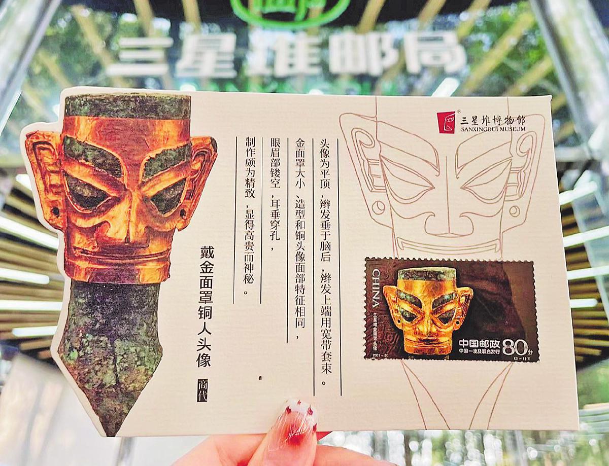 三星堆遺址是20世紀人類最偉大的考古發(fā)現(xiàn)之一,被譽為“長江文明之源”,被國家文物局列為“十四五”時期大遺址。2023年7月27日,三星堆博物館新館開館,1500多件(套)新老文物集中亮相,吸引了世界各地的游客來此打卡。在這里,還有一處寶藏打卡點等待著大家,那便是集三星堆文明與郵政文化于一體的三星堆主題郵局。