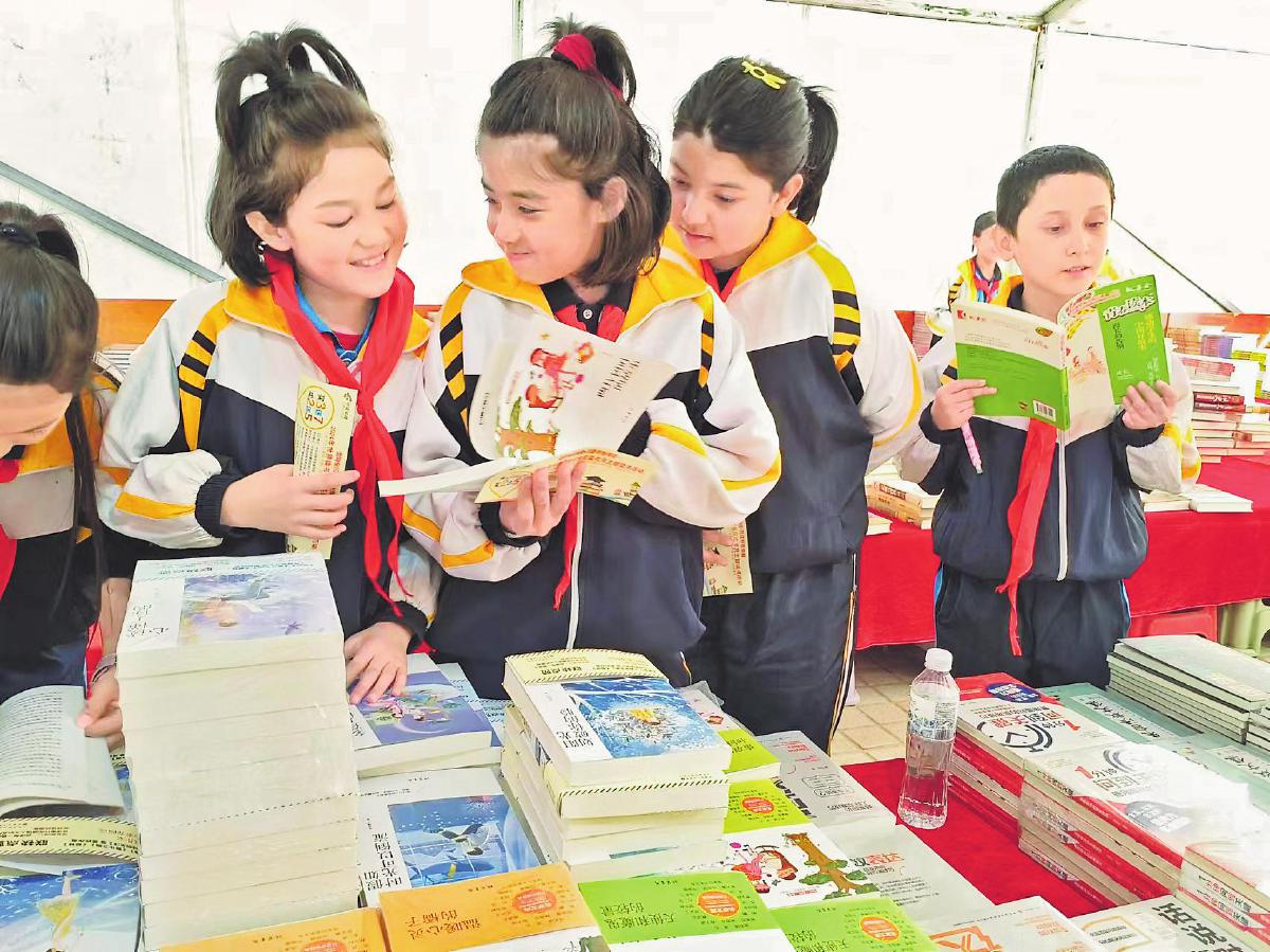 近日,由新疆維吾爾自治區(qū)喀什市委宣傳部、市教育局牽頭,喀什地區(qū)郵政分公司承辦的“閱讀新時(shí)代·喀什向未來”圖書贈(zèng)閱惠民活動(dòng)啟動(dòng)儀式在喀什市第十一小學(xué)舉行??κ驳貐^(qū)分公司捐贈(zèng)了價(jià)值6萬元的圖書和價(jià)值80萬元的圖書優(yōu)惠券,并現(xiàn)場進(jìn)行圖書展銷,進(jìn)一步豐富學(xué)校圖書閱覽室藏書,培養(yǎng)學(xué)生良好的閱讀習(xí)慣,讓他們在讀書中獲得更多知識,健康快樂地成長。圖為喀什市第十一小學(xué)的學(xué)生徜徉在書海中。
