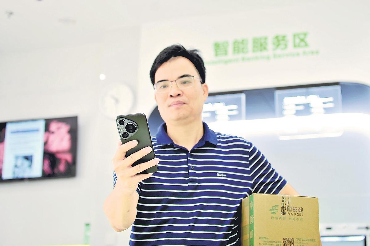 支局周?chē)纳虘舫3?huì)來(lái)自助寄件。在附近做了十多年電子產(chǎn)品生意的吳先禮是這個(gè)網(wǎng)點(diǎn)的??汀Uf(shuō)起網(wǎng)點(diǎn)的變化,他很有感觸:“以前來(lái)這個(gè)營(yíng)業(yè)點(diǎn)寄東西,人多的時(shí)候要等不少時(shí)間;現(xiàn)在我提前在手機(jī)上下單,來(lái)了直接寄,像是自己家里有郵局,非常方便!”