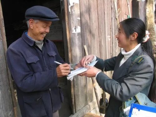這是在江西省鉛山縣陳坊鄉(xiāng),羅細(xì)英把信件送到居民手中(2007年1月6日攝)。新華社記者 陳春園 攝
