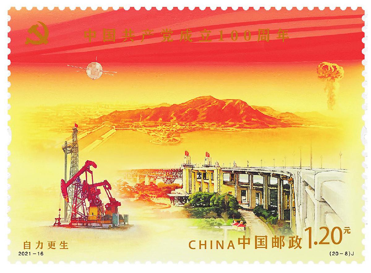 1964年10月16日,中國(guó)第一顆原子彈爆炸成功,有力打破了超級(jí)大國(guó)的核壟斷。至此,中國(guó)成為繼美國(guó)、蘇聯(lián)、英國(guó)、法國(guó)之后第五個(gè)擁有核武器的國(guó)家。這一歷史時(shí)刻,也被銘記在2021年發(fā)行的《中國(guó)共產(chǎn)黨成立100周年》第8枚郵票“自力更生”的票面內(nèi)容中。