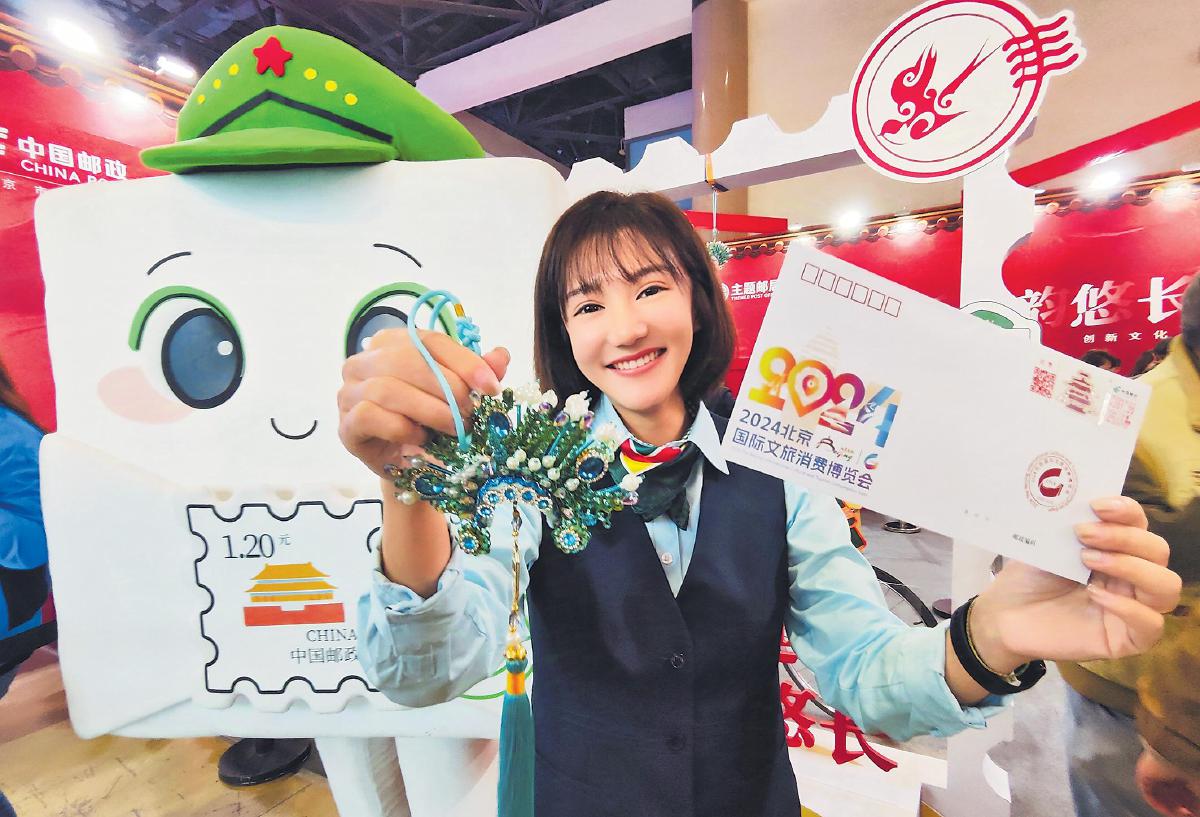 11月1日,2024北京國際文旅消費博覽會在北京展覽館開幕。北京郵政以“文脈延綿 古韻悠長”為主題亮相展會,設計制作了消博會紀念封,推出各具特色的主題郵局展位,包括生肖文化主題郵局、祈福郵局、北京京劇主題郵局等,為參觀者帶來了一場城市文化、旅游文化與郵政文化相融合的沉浸式體驗。