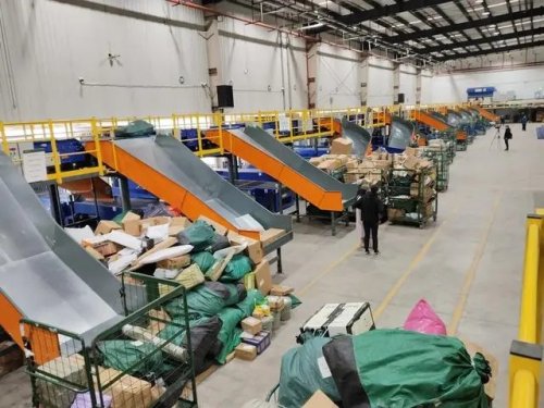 隨著一輛輛卡車到站??吭诙饪谔?,來(lái)自各地的郵件通過傳送帶進(jìn)入省際進(jìn)口郵件處理中心,粗分、拆包、小件掃描、裝籠,工人們圍繞著各個(gè)分揀線開始緊張有序的郵件分揀作業(yè)。