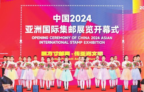中國福利會少年宮小伙伴藝術(shù)團(tuán)在亞郵展開幕式上表演開場節(jié)目《永遠(yuǎn)在一起》?!豕?攝