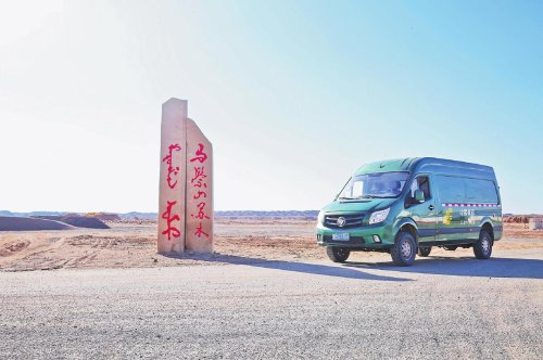 2020年7月,“額濟納旗—黑鷹山”邊防郵路正式開通,最遠(yuǎn)的投遞點往返路程有778公里,道路坎坷難行,最怕的是遭遇沙塵暴或冬夏季車輛在無信號地帶出現(xiàn)故障?!颁佁焐w地的黃沙襲來,車都能掉一層漆,我們在與黃沙賽跑。”哈斯畢力格淡定地說,“在無信號區(qū),如果車輛出現(xiàn)故障,根本沒有來往車輛,必須跑到有信號的地方或者深入沙漠找尋牧民求助?!?/p>