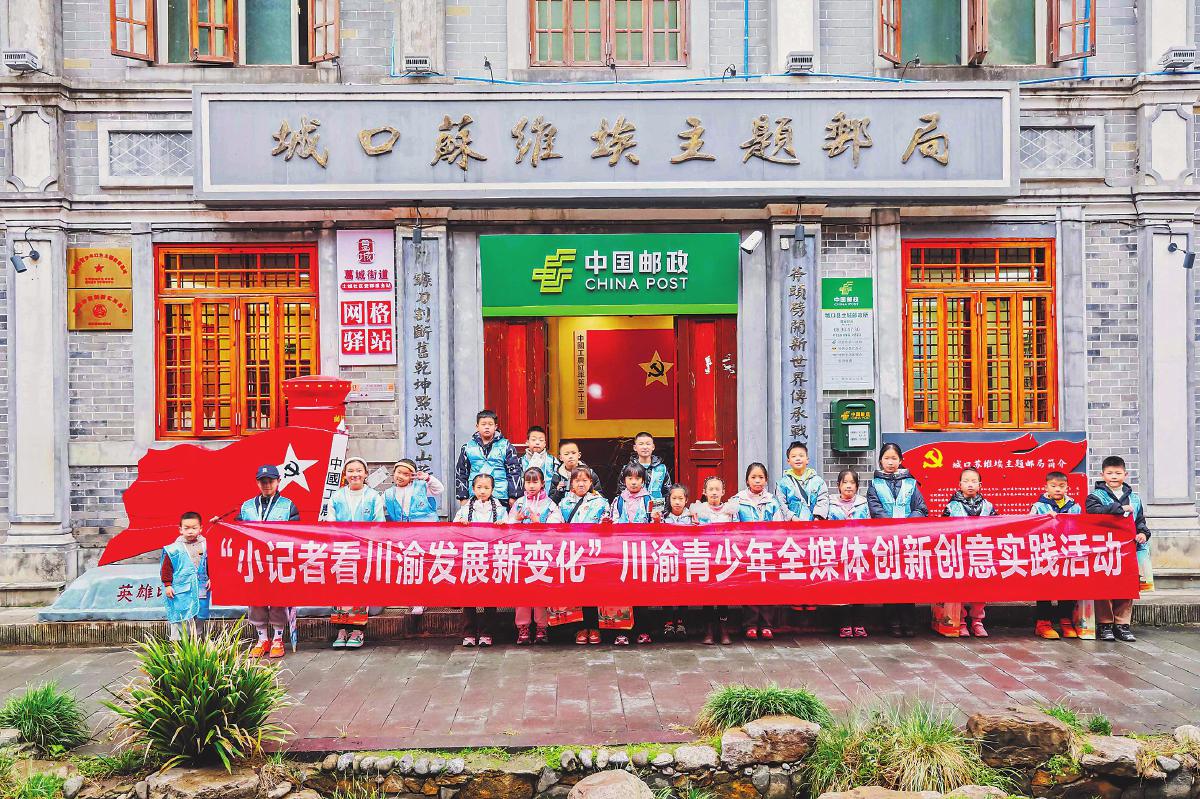 11月23日,“小記者看川渝發(fā)展新變化”川渝青少年全媒體創(chuàng)新創(chuàng)意實(shí)踐活動(dòng)走進(jìn)重慶市城口縣青少年紅色教育基地——城口蘇維埃主題郵局。在主題郵局,郵政員工向小記者們講解了郵政發(fā)展史,帶領(lǐng)小記者們參觀了展廳內(nèi)老式自行車(chē)、磁石式電話,感受有聲圖書(shū)等智能終端設(shè)備帶來(lái)的現(xiàn)代化郵政服務(wù)體驗(yàn)。