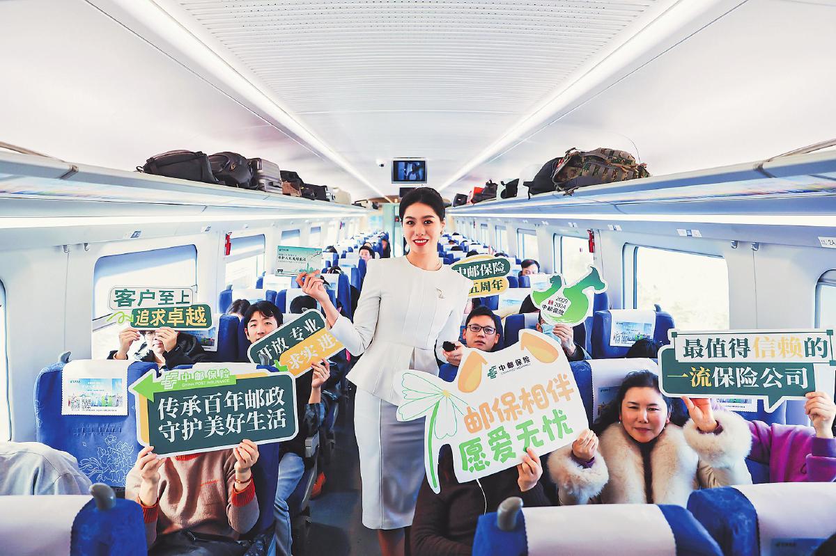 12月20日,中郵保險在江蘇南京南站舉辦了高鐵冠名專列首發(fā)儀式,并在冠名的高鐵品牌列車上開展了“情滿江蘇 服務(wù)萬家”金融消保知識問答活動。活動中,中郵保險特邀主持人向乘客介紹了中郵保險的綜合實力與優(yōu)質(zhì)服務(wù),中郵保險工作人員圍繞金融消費者權(quán)益保護,與乘客進行了趣味有獎問答互動,并邀請乘客掃描二維碼,關(guān)注中郵保險微信公眾號,觀看《大國保險》普惠促進城鄉(xiāng)融合暨中郵保險專題片。此次活動為乘客們增添了旅途的樂趣,也進一步傳播了中郵保險“郵保相伴 愿愛無憂”的品牌主張。